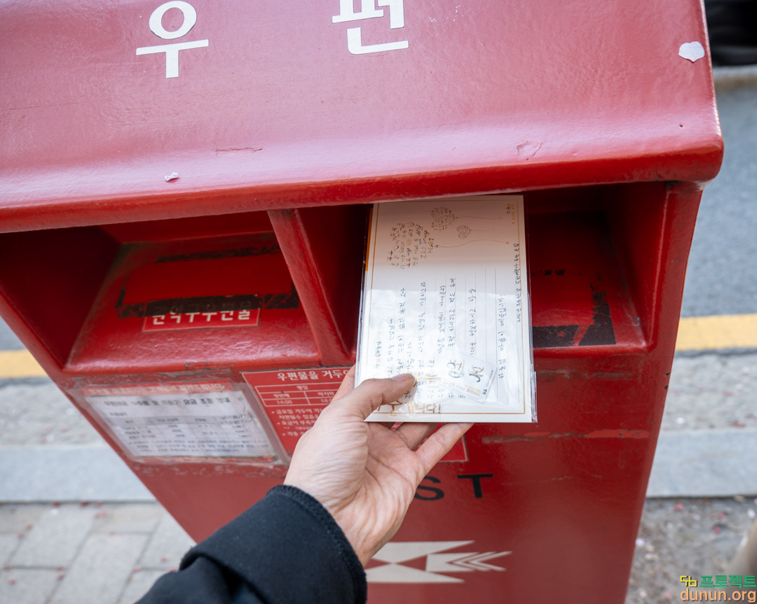 투표를 하고 오래간만에 우편으로 삶의 흔적을 기부한 기부자님에게 마음을 담아 두눈프로젝트 기념품을 보내고자 우체통을 찾찼다.