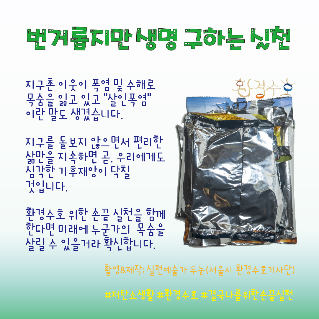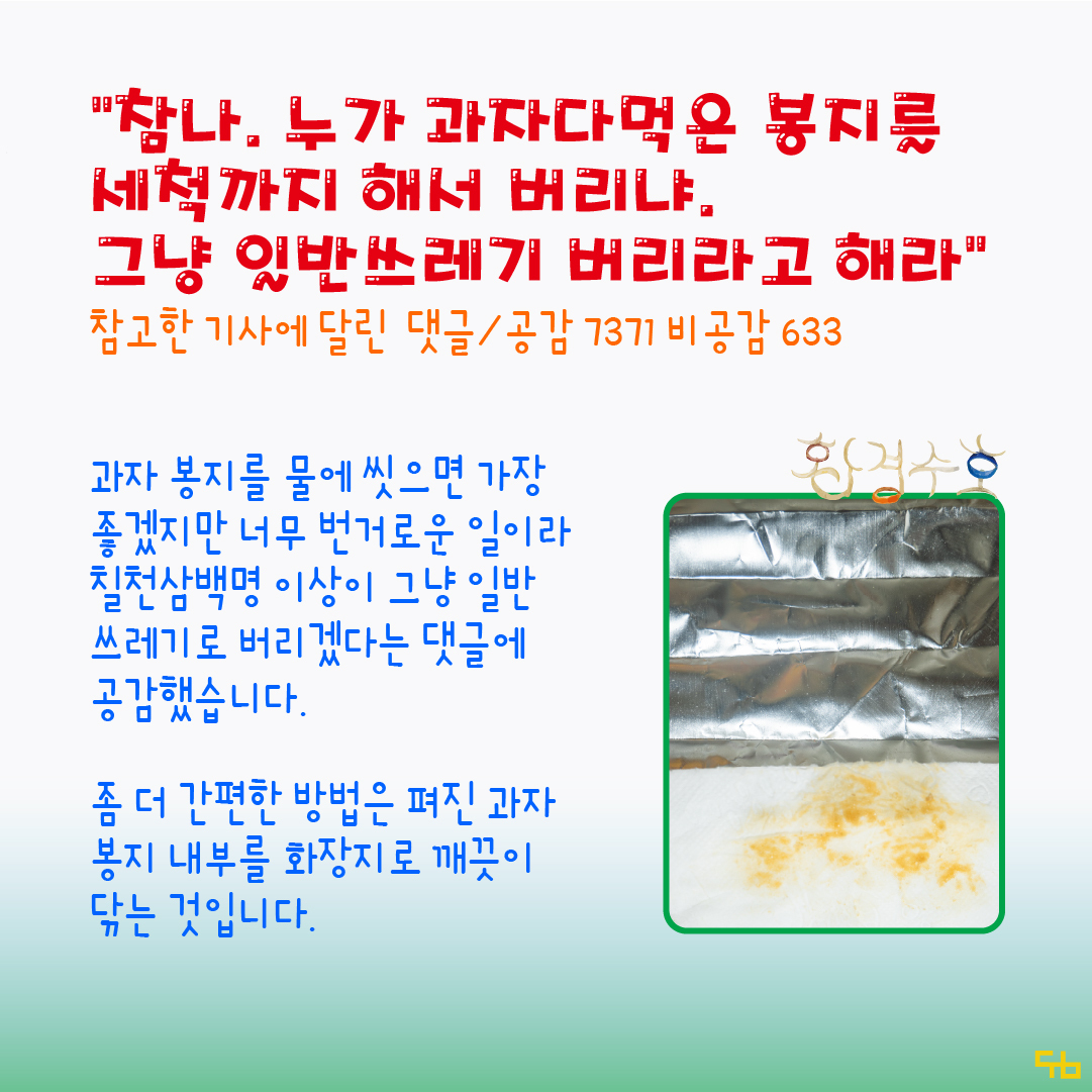 손끝으로 환경수호7 - 과자봉지 올바른 배출, 미래의 누군가를 살리는 행동 본문