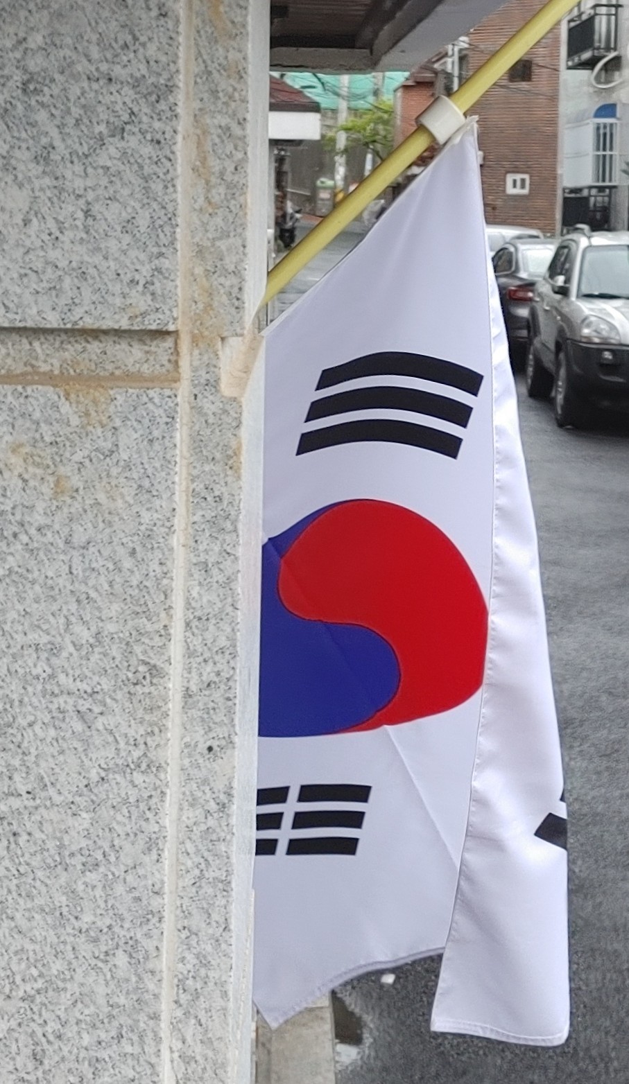 오늘이 현충일이자 육육기부의 날이면서 제 생일이기도 합니다. 비가 조금 내리긴 하지만, 태극기를 올렸습니다.