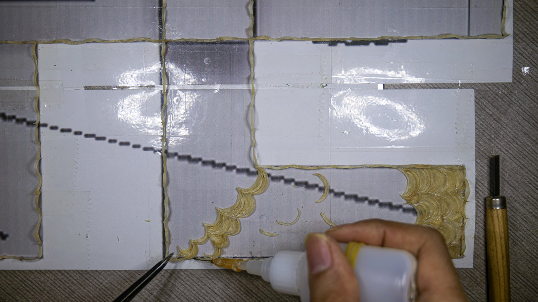 10월 15일까지 완성해야 하는데 색 손톱이 턱없이 부족할 거 같아 아랫면은 올봄 가족 중에 유일하게 장기적으로 삶의 흔적을 모아주는 친누나 가족 5명이 기부한 색 없는 손톱으로 작업하고 있습니다. 한 조각 한 조각 핀셋으로 잡아, 면을 만들어 가다 보니 시간이 너무 걸리는 거 같아 손톱을 재료로 할 수 있는 3d 프린터기가 있으면 색 손톱 모으는 일에 더 매진할 수 있을 텐데 하는 생각이 들면서 그래도 아날로그 방식으로 손끝으로 제작하는 것이 의미 있겠지 하는 생각도 들었습니다. 손톱을 이어 붙이는 시간보다 손톱이 자라는 시간에는 비할 바 못 되겠지요.