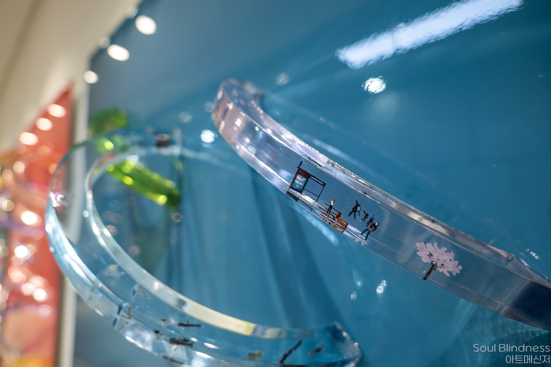 atelierJAKㅣIndescribable scenes 29/06/2023ㅣexpoxy resin, acrylic paintings on overhead transparency, aluminium, composite boardㅣ 51×95×20cmㅣ2023