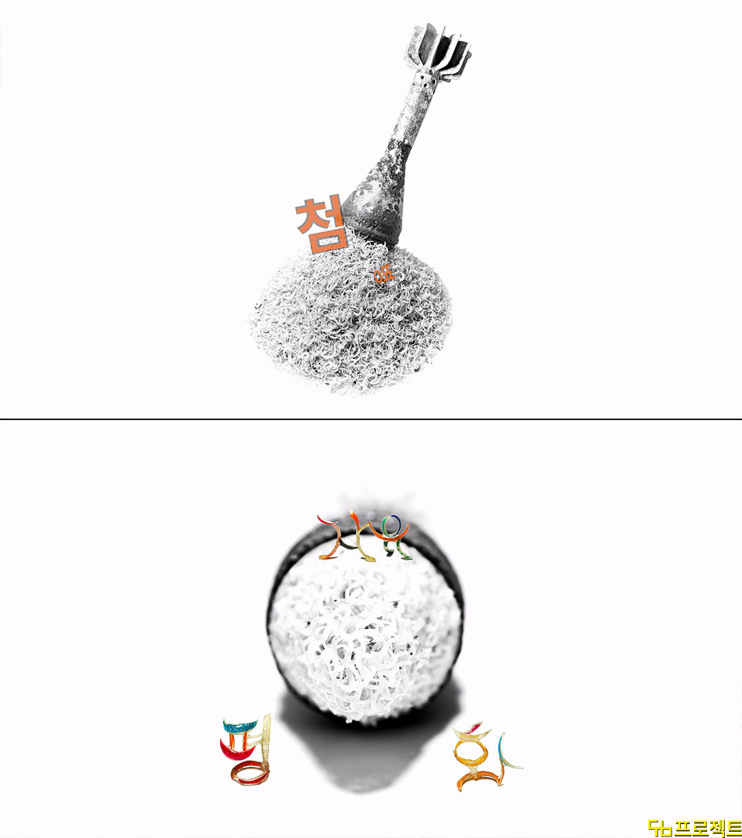 위 이미지는 "평화를 준수하라" 공모전에 선정된 <첨병지심> 영상 작품의 두 장면입니니다.(전시안내링크=>11월19일까지 전태일 기념관) 이 작품은 외국인을 포함하여 남녀노소 750여 분에게 기부받은 삶의 첨병인 손톱과 북촌 한옥마을에서 촬영한 <티끌 모아 태심>, 박격포 탄피를 새 활용한 <형이상학 폭탄>, ‘자유’, ‘평화’, ‘사랑’ 글자를 표현한 <두눈체-인류의 희망>으로 연출해 만든 것입니다. 지구 한편에는 평화를 원치 않는 세력에 의해 병원까지 폭격 당했습니다. 75년 전, 전쟁 이후 항쟁과 보복이 반복되고 있지만 이 분쟁의 씨앗을 심은 영국 그리고 UN은 방관하고 있습니다. 이는 갑 위의 갑이 만든 구조 안에서 실질적으로 일하는 사람들끼리 살기 위해 다투는 현실과 유사해 보이기도 합니다. 어떤 노동자는 하루하루가 전쟁 같은 삶을 살고 있으며 한해 약 이천 명의 노동자가 일하다 목숨을 잃고 있습니다.