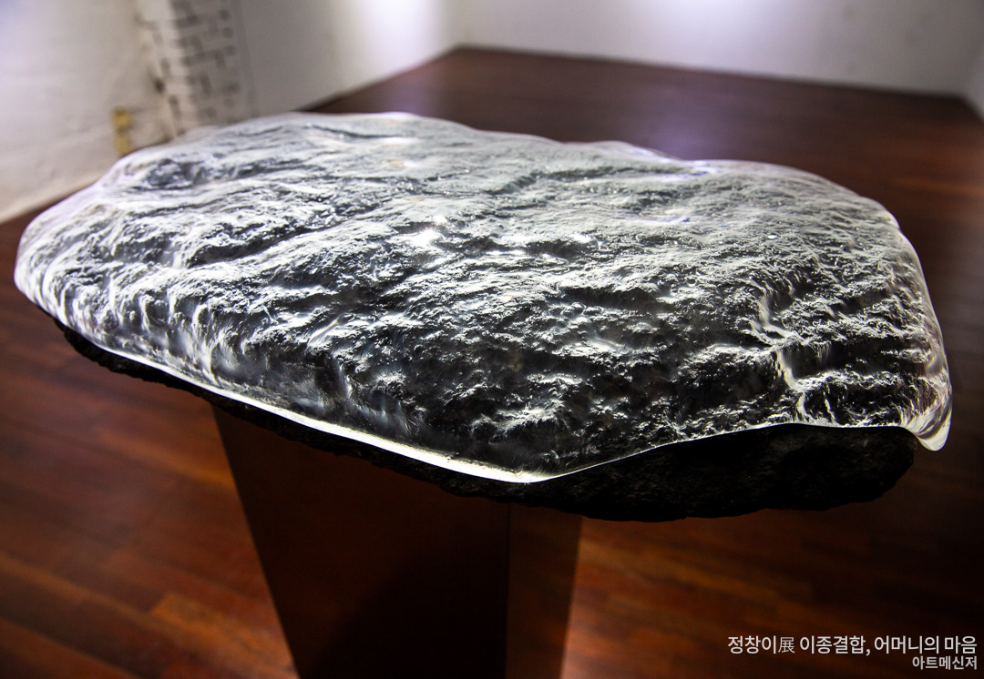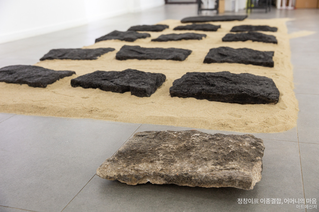 구들장과 유리, 돌과 같은 서로 다른 물성을 가진 재료들을 결합하는 실험은 어머니의 마음과 자연의 순환을 상징하는 행위로서, 이종결합을 통해 생명과 재생의 과정을 표현하고 자 했습니다. 이 과정에서, 자연과 인간, 그리고 그 사이에서 발생하는 상처와 치유, 관계의 형성을 탐구하며, 자연의 본질을 존중하고자 하는 저의 예술적 철학을 반영했습니다.
