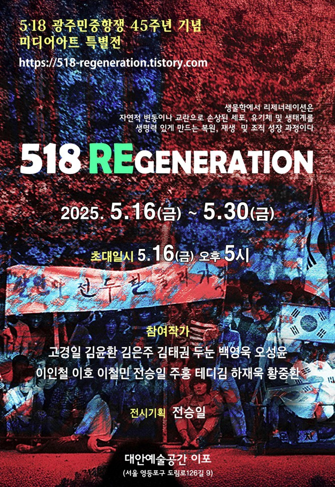 참여작가 15명의 작품 정보는 https://518-regeneration.tistory.com 보실 수 있습니다.