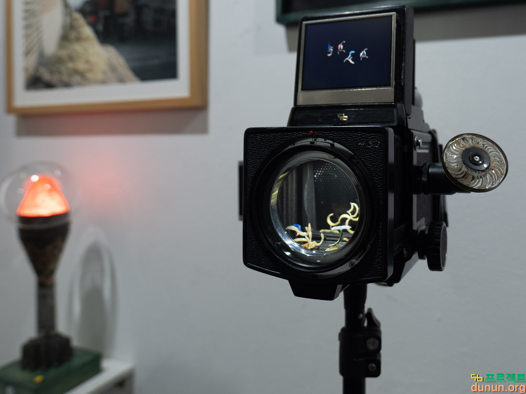 두눈_온전한 삶을 위한 바람_ 두눈체, 네 가족의 손톱, 렌즈, 영상, 센서, led, 오브제_ 가변크기_2025