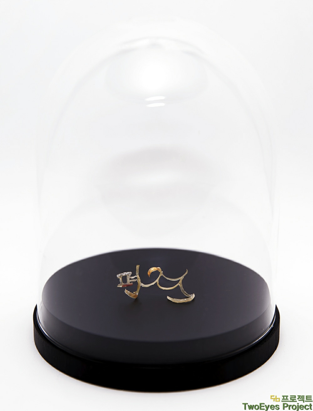 두눈_ 노란 향수_ 호미(조모 유품), 손톱(가족 3명이 25개월간 모음), 크리스탈 _ 30 X 30 x 28cm _ 2010 (작품 정보)
